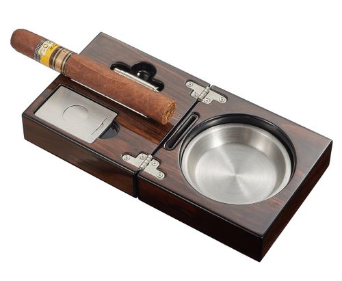 Maintain an orgainized room and keep all your smoking accessories safely together. The Tamal is more than a handsome wooden box and upon opening, transforms into a cigar assistant. A cigar cutter is provided for a clean slice on your 54 ring gauge cigars with a single stainless steel blade. A 7 mm punch, with poker, is also included should you prefer a punch cut. After lightering up your stogie, take advantage of the built-in ashtray with removable basin for easy clean-up. With so many features, the Tamal deserves a special invitiation to your next smoke.