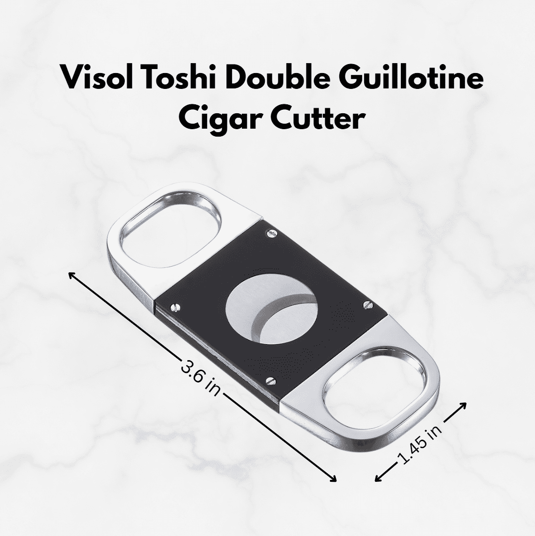 Visol Toshi Double Guillotine Cigar Cutter is a practical cigar cutter designed for clean, precise cuts and reliable everyday use. Its enclosed back design helps control the depth of the cut, reducing the risk of overcutting and allowing for a more consistent result. Built with durability in mind, this cutter offers a comfortable grip and a compact size that’s easy to carry at home or on the go.