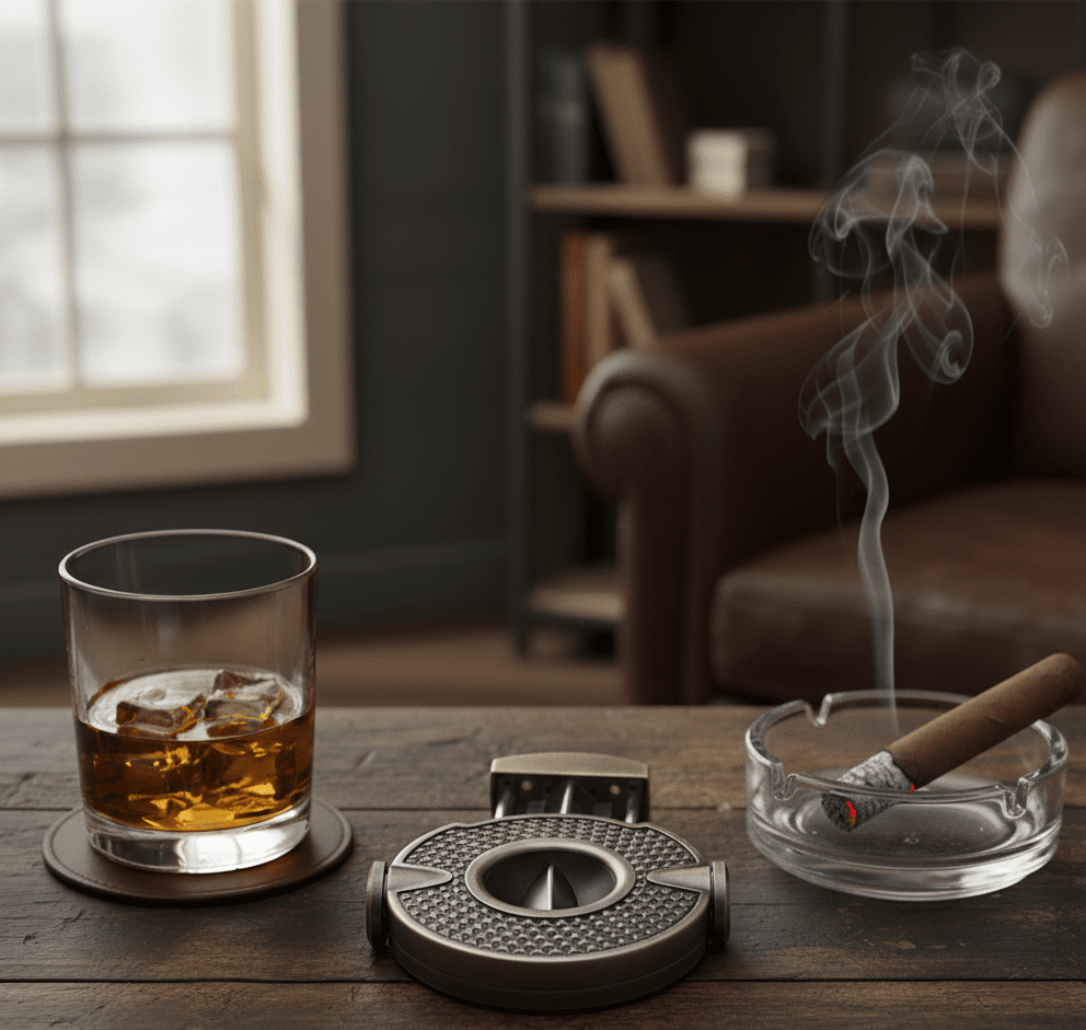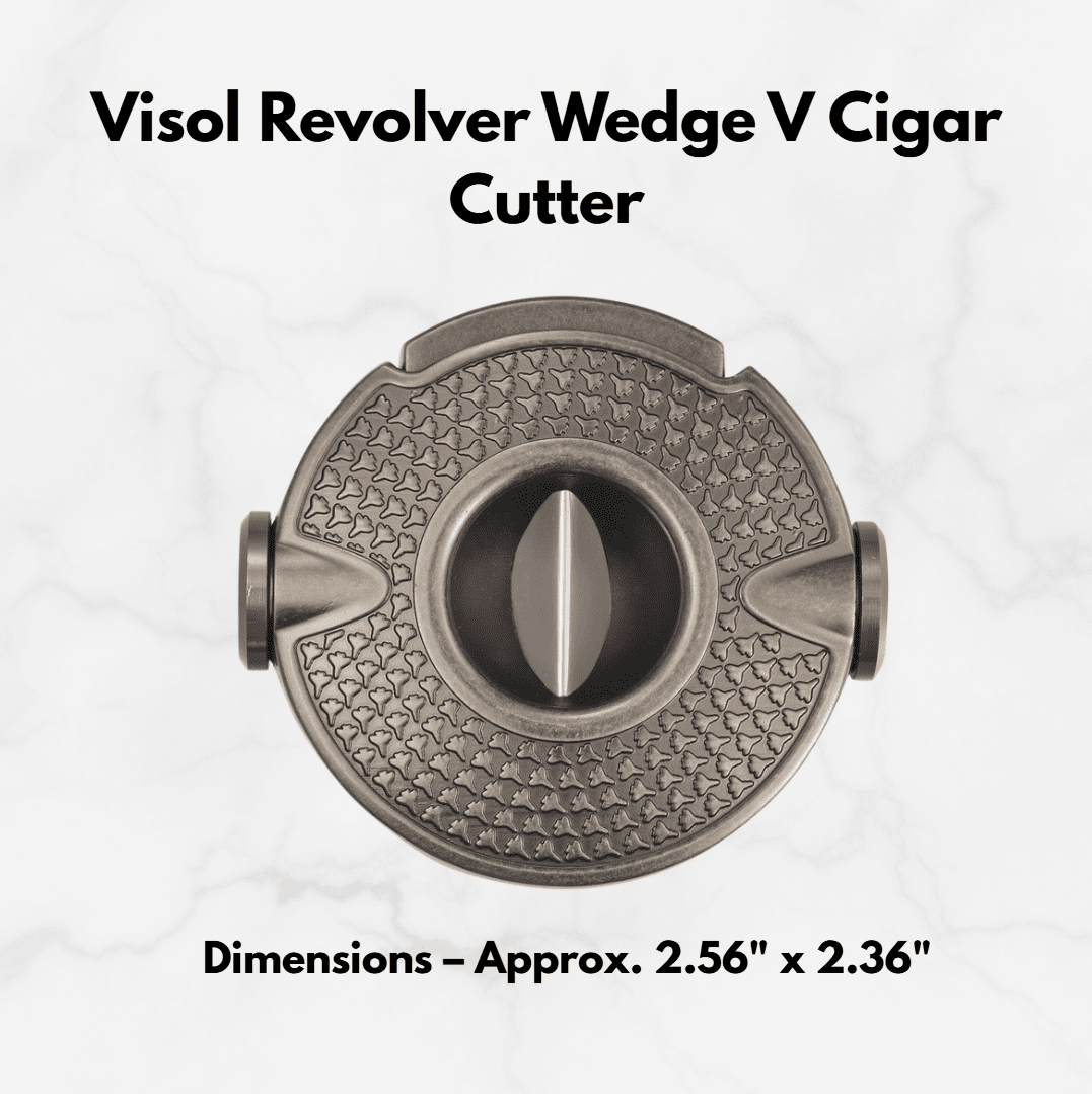 Visol Revolver Wedge V Cigar Cutter is a wedge-style V cutter designed for controlled V-shaped cuts. The wedge V blade creates a defined cut while helping maintain the cigar cap. A slide-action mechanism allows the blade to open and close smoothly for consistent operation.