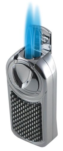 Chrome Finish with Silver Patterned Carbon Fiber Plate on Front Side of Lighter
