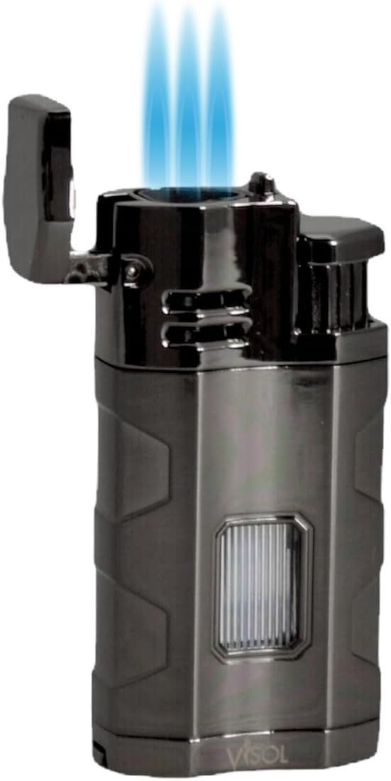 Visol Kauai Triple Flame Cigar Lighter - Gunmetal is a stylish and dependable butane lighter designed for cigar lovers and everyday use. Featuring a triple flame ignition system, this lighter delivers three strong, wind-resistant flames for quick and even cigar lighting.