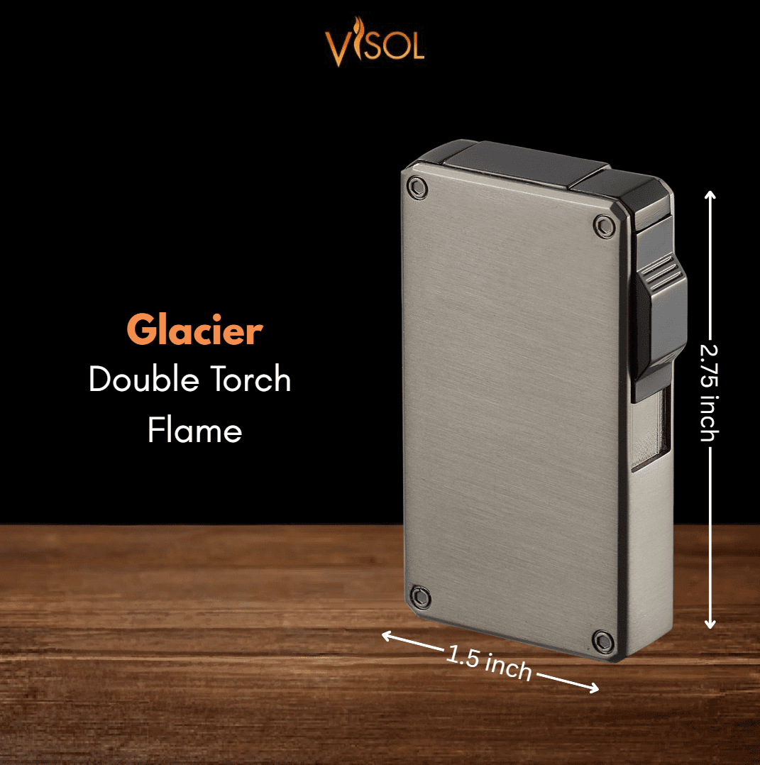 Equipped with a strong double torch flame, the Glacier delivers fast, even, and wind-resistant ignition. The single-action ignition system ensures smooth lighting with one simple press. For added convenience, it features a built-in cigar punch at the base and a fuel window that allows you to easily monitor butane levels.