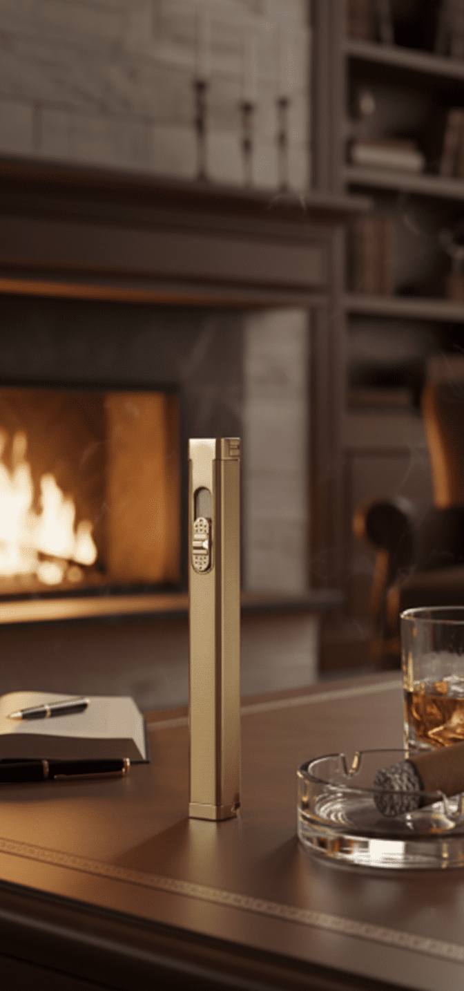 Crafted from durable metal with a polished gold finish, the Canary is both slim and sturdy, making it perfect for daily use or travel. The built-in cigar punch cutter and adjustable flame control offer all-in-one convenience, while the fuel window keeps you aware of your butane level.