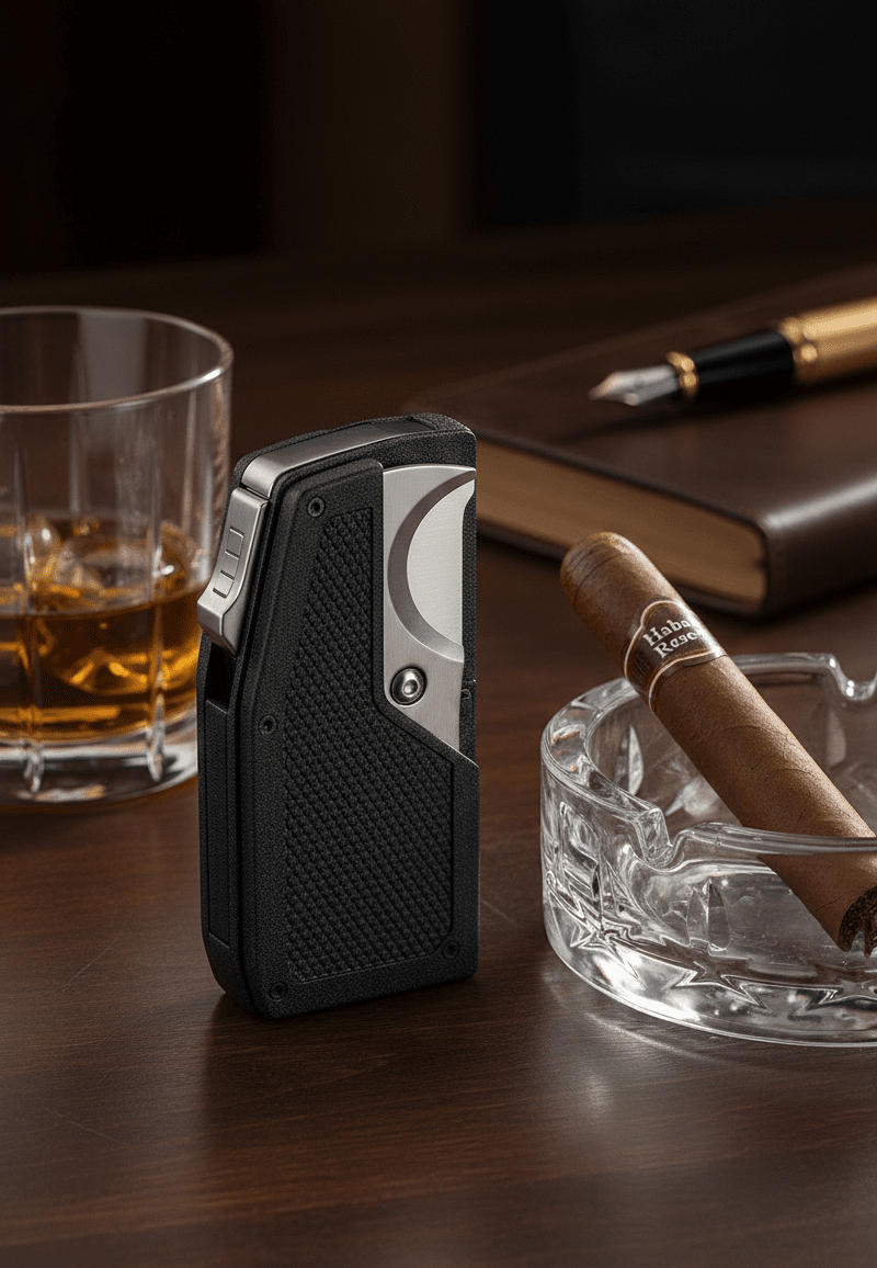 • Integrated Cigar Scissors - Conveniently built-in scissors for precise cutting.
