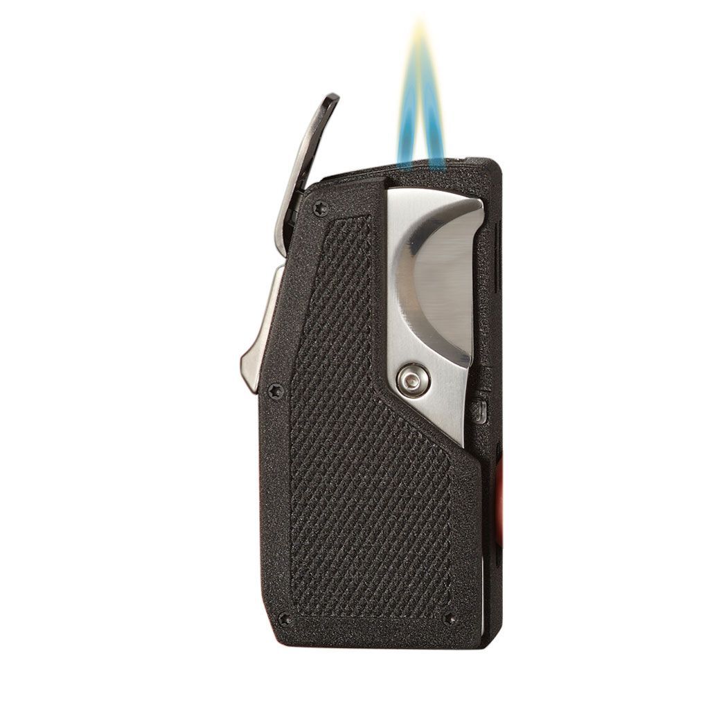Visol Sierra Dual Torch Flame Cigar Lighter with Multi-Tool Cigar Accessories - Black