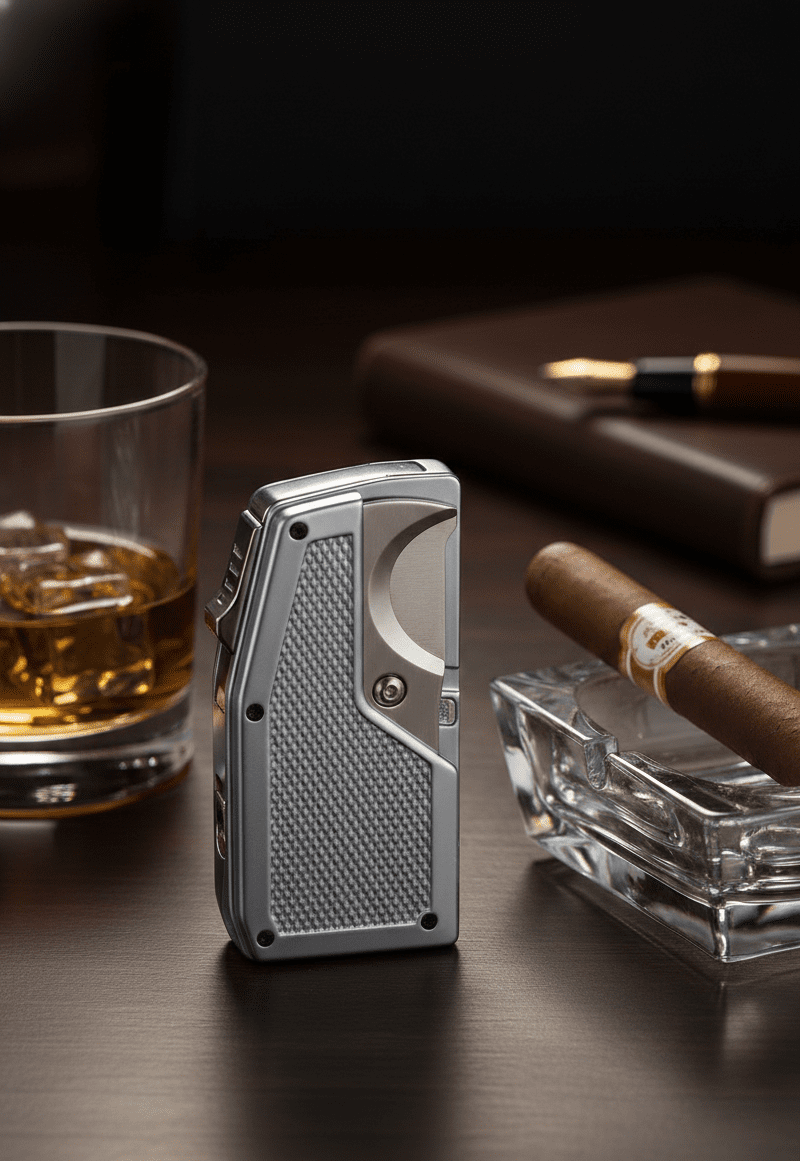 • Integrated Cigar Scissors - Conveniently built-in scissors for precise cutting.