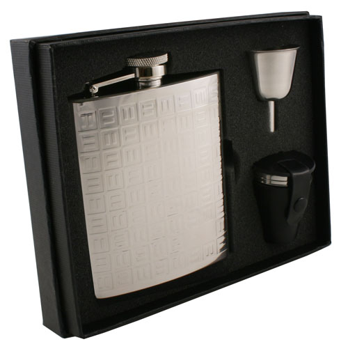 Visol has come up with a great gift set for you to enjoy featuring the "Domino" flask. The stainless steel flask has a domino design you will love. You will also be impressed by that fact that this small flask is capable of holding eight ounces. A funnel is included in the gift set for you to be able to pour your favorite beverage into the flask without any spills. Also included are four stainless steel shot cups with a leather carrying case. You will be able to share a drink with your friends thanks to these portable cups that can be used over and over.