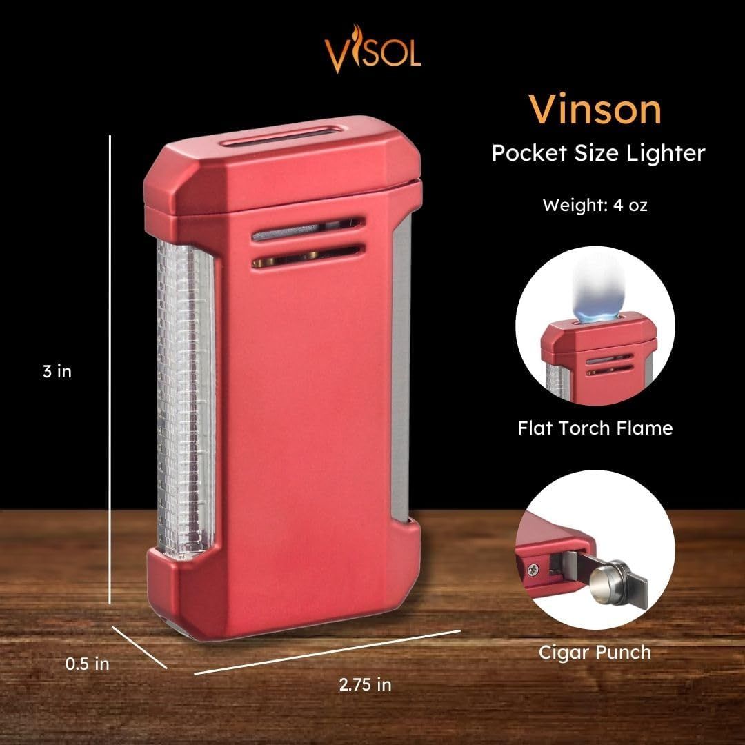 • Reliable Flat Torch Flame - The Vinson lighter delivers a wide, wind-resistant flame and includes a built-in cigar punch at the base.