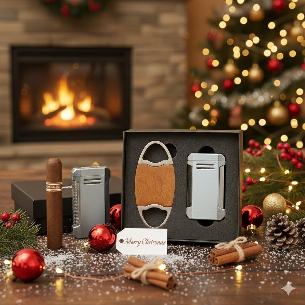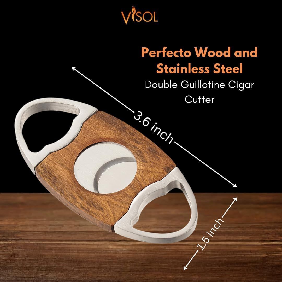 The Visol Perfecto & Vinson Cigar Gift Set is a refined pairing crafted for cigar aficionados who value both craftsmanship and utility. This set includes the Perfecto Wood & Stainless Steel Double Guillotine Cutter and the Vinson Flat Torch Lighter in Silver, giving you a balanced contrast between natural wood tones and sleek metal.