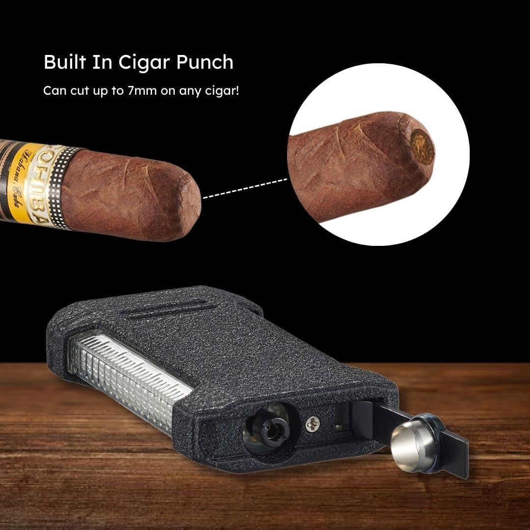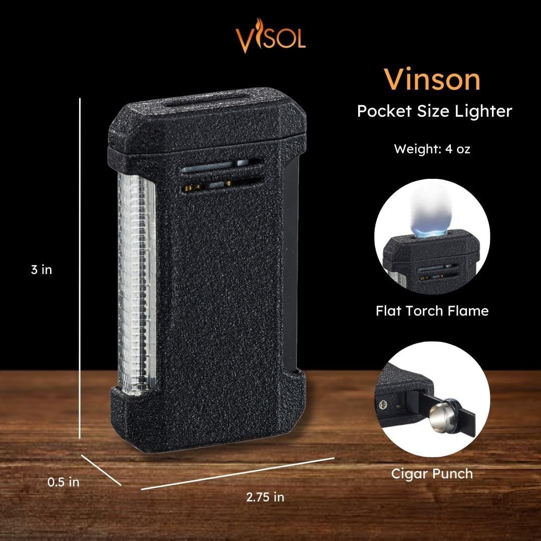 Flat Torch Flame Lighter (Black) - The Vinson lighter produces a wind-resistant, flat flame and includes a built-in cigar punch for all-in-one utility.