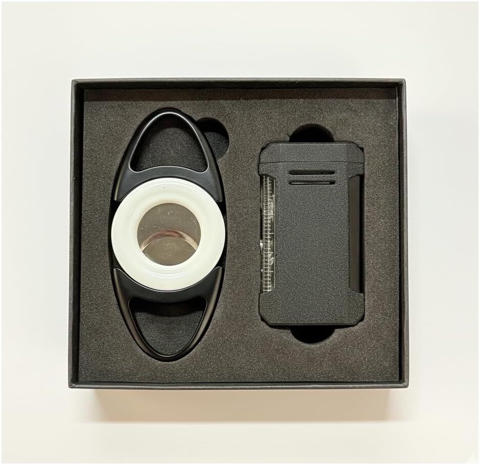 Stylish Color Contrast - A vibrant white cutter contrasts elegantly with a sleek black lighter, adding sophistication to the set.